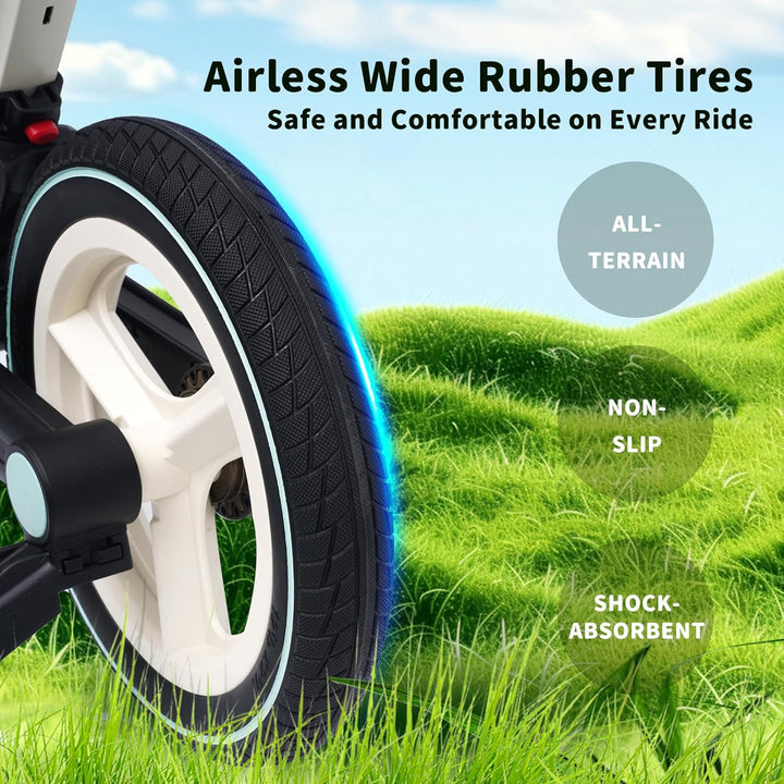- 💪 Built to Last, Designed for Safety Crafted with a strong steel frame, this bike offers exceptional durability and stability. All of our products are ASTM and CPSIA CERTIFIED. The air-free, all-terrain rubber tires absorb shocks for a smooth ride on any surface—whether it’s pavement, gravel, or grass. A responsive handbrake provides added control for quick stops and safety.